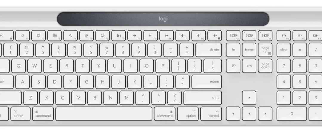 在键位设计上,k980 采用全尺寸布局,兼容 windows 与 macos,配备方向键与数字键盘。功能键行预设了媒体播放、亮度和音量控制,用户可通过 logi options plus 应用自定义或关闭这些二级功能。