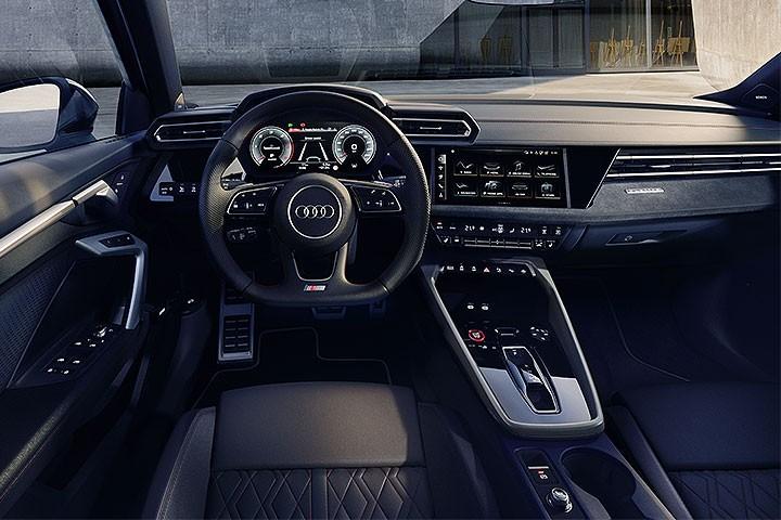 在驾驶座舱设定上,s3 理所当然的标配s line 套件版本,数位驾驶界面与先前公布的 a3 s line 版本无太大差异,不过方向盘却是运动化版本的平底跑车版本,并采用红色外露车缝线来迎合运动化本色;此外,最大不同之处,就是 s3 驾驶模式较一般版本 a3 多了 dynamic plus 模式,总计来到 6 种驾驶模式的设定。
