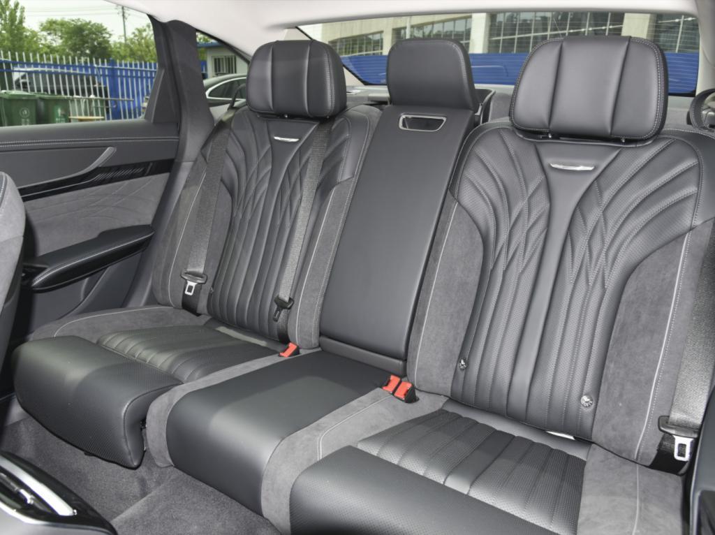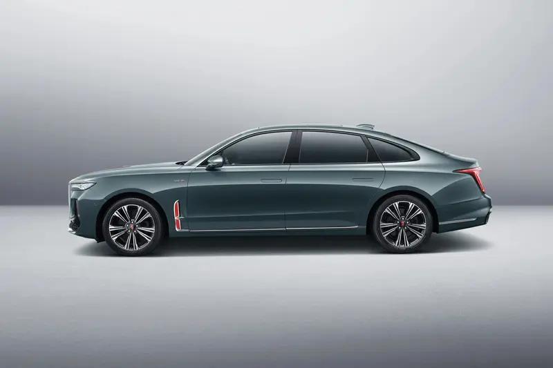 车身侧面,侧面造型依旧保持了经典的溜背造型设计,搭配运动的车身结构以及修长的车身设计,处处都在体现它的优雅气息。同时延续前置后驱以及前高后低的车身布局,与俯冲式车身造型有所不同;细节方面,在翼子板部分依旧搭配红旗的经典logo标识作为点缀。