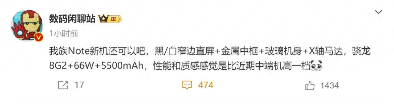 处理器搭载的是骁龙8gen2,电池容量55mah,支持66w快充,性能和质感方面感觉要比近期发布的中端要高一档位,说的也就是iqoo z9 turbo,redmi turbo 3这几款新机。
