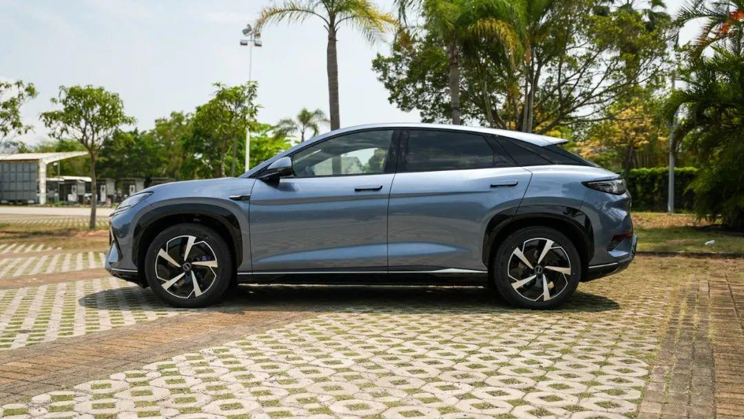 新车的侧面设计也非常抓人眼球,悬浮式车顶是时下非常流行的设计。作为海洋网的一员,海狮07ev也有着双腰线设计,简洁的腰线营造出一种向前俯冲的姿态,给人蓄势待发的感觉。