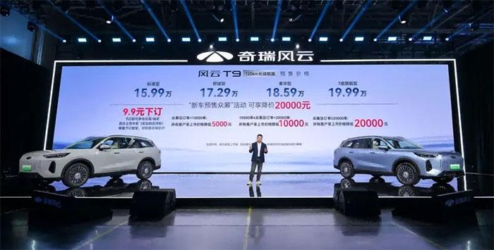 在2024北京车展上,奇瑞风云t9亮相,此前官方已经公布了新车15.99~19.99万元的预售价格区间。