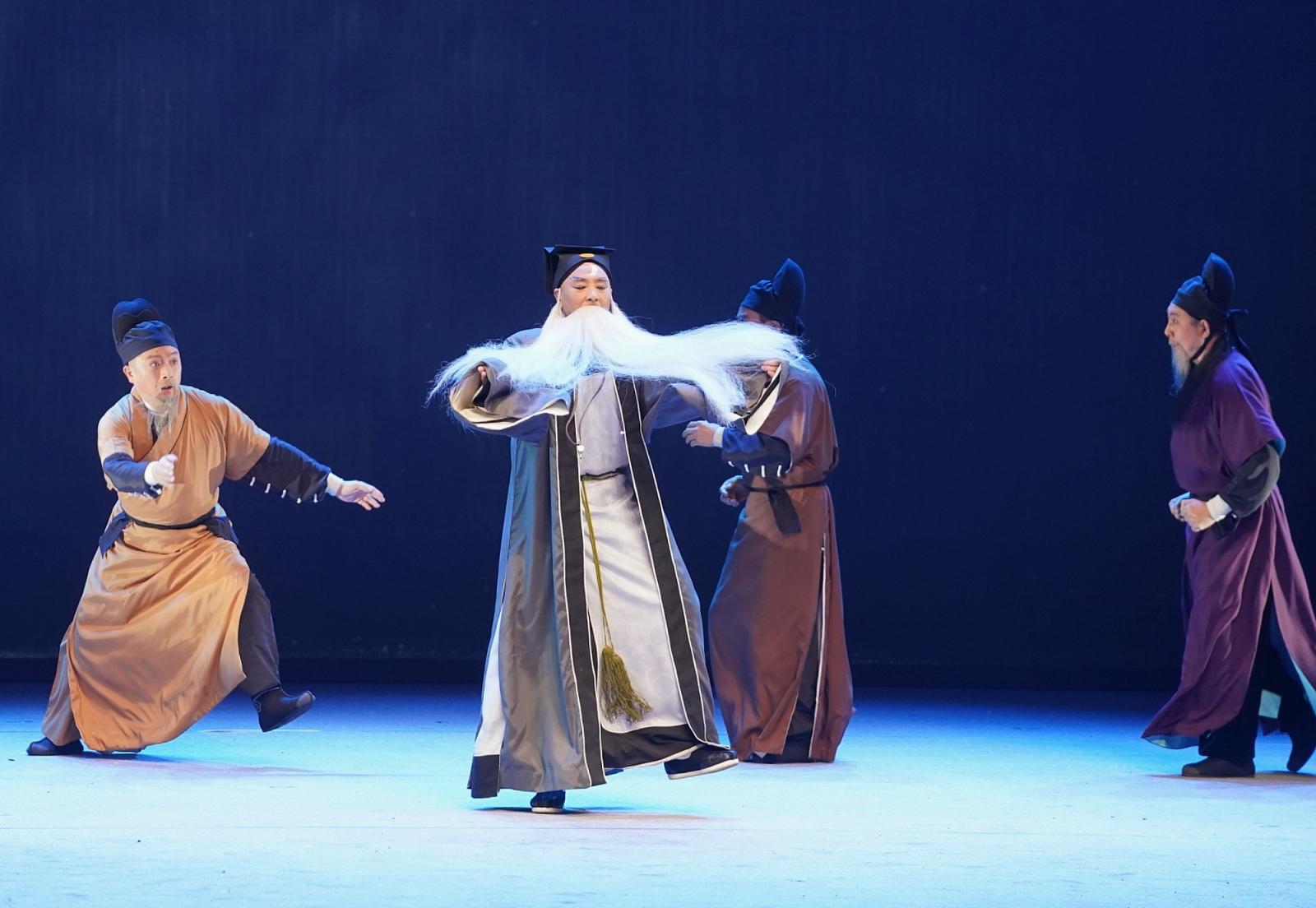 王全有曾在评剧舞台上多次扮演“陈世美”,此次在《包拯还乡》中首次挑战“老年包拯”这一既具经典性又很有创新性的人物,给大家带来耳目一新的惊喜感受。近两个小时的演出中,他几乎全程不下台,大段荡气回肠的唱腔,唱舞并重的圆场,以及现场书法泼墨展示等,展现出了他深厚扎实的艺术功力;风趣幽默、轻松自然的表演,又显示出多年来涉足影视、话剧的他,对于塑造人物更加具有现代意识的细腻处理,将一个“情理之中,意料之外”的“退休包拯”呈现得立体饱满,层次分明,也让观众在悲喜交加的复杂感受中对现实有更多的审视和思考。