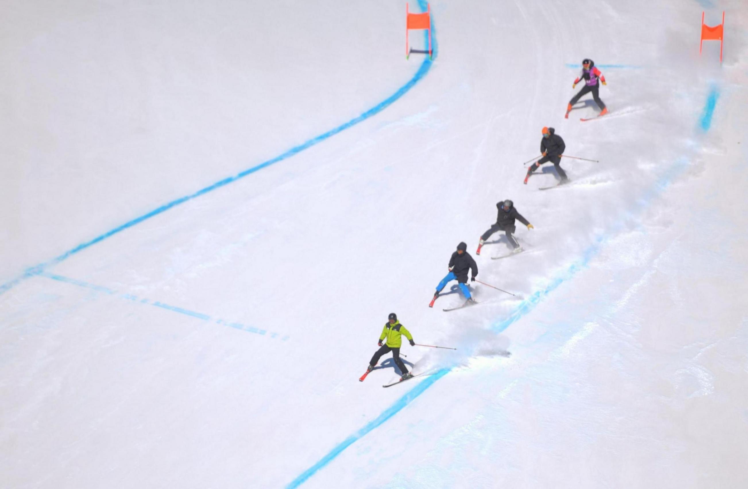 蓝天映衬着白雪,“雪飞燕”赛道洁白、又高又陡,当天举办的是滑降比赛,运动员们从山顶出发区飞驰而下,犹如一个个低空飞行的燕子。1月5日至6日,是比赛的官方训练时间。1月7日至8日,举行滑降比赛。1月10日至11日,举行超级大回转比赛。共有中国、日本两个国家的77名运动员参赛。