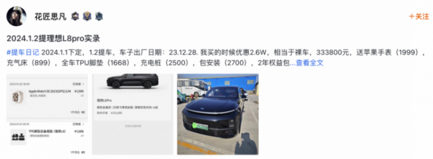 1月11月,理想汽车官方在微博宣布,“将对理想l系列车型进行配置的更新,2024款车型将在3月发布并开启交付。同时,春节将至,理想汽车推出2023款车型的优惠活动。”