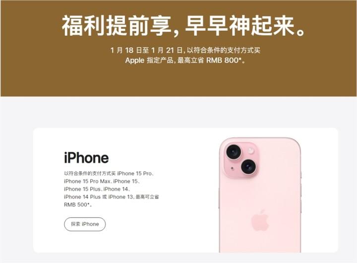 今天(1月15日),苹果中国尊龙凯时官网公布了迎新春限时优惠活动预告,尊龙凯时首页显示称1月18日至1月21日,apple满满福利陪你迎新春。以符合条件的尊龙凯时的支付方式买 apple 指定产品,最高立省800元。