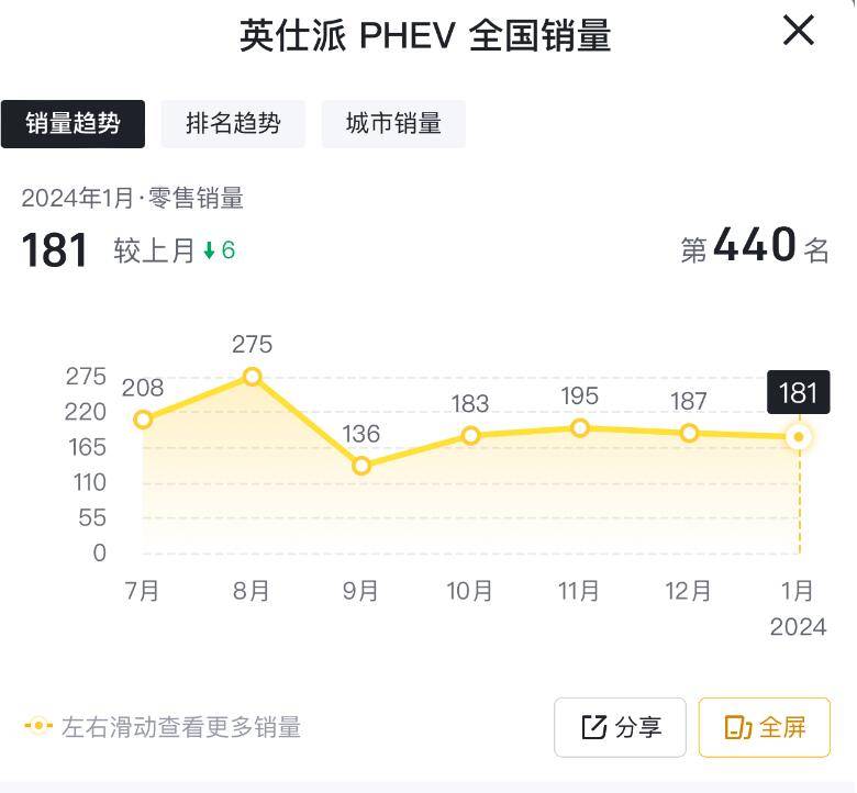 换言之,从2023年11月份开始,截止到2024年1月份,英仕派phev在国内车市的单月零售销量已经连续两个月环比下滑了。
