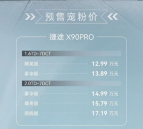 2月22日,捷途x90 pro正式开启预售,预售价12.99-17.19万元,该车是捷途x90的衍生车型,采用了全新的设计语言,提供了1.6t和2.0t两种发动机。