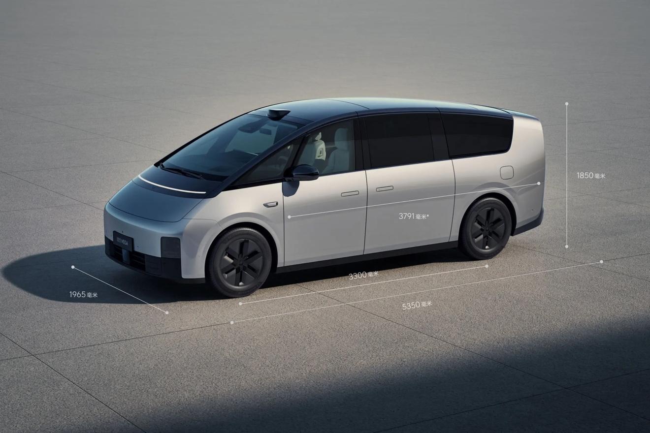 理想mega车身尺寸为5350/1965/1850毫米,轴距长达3300毫米。细节处理上,伸缩式侧滑门把手与隐藏式轨道设计不仅保持了车身侧面的整体美感,也优化了风阻系数。车辆配备了18英寸轮辋,搭载双电机四驱系统,前后电机最大功率分别为155千瓦和245千瓦,实现0-100公里/小时加速时间5.5秒,最高车速可达180公里/小时。