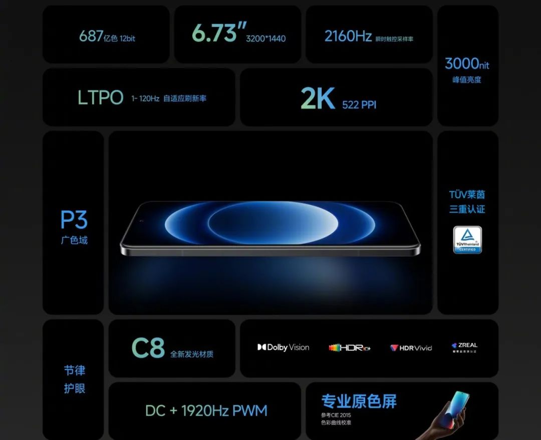 c8 基材、12bit 、1920hz 高频 pwm 调光、3000nits 的峰值亮度......小米 14 pro 那块?