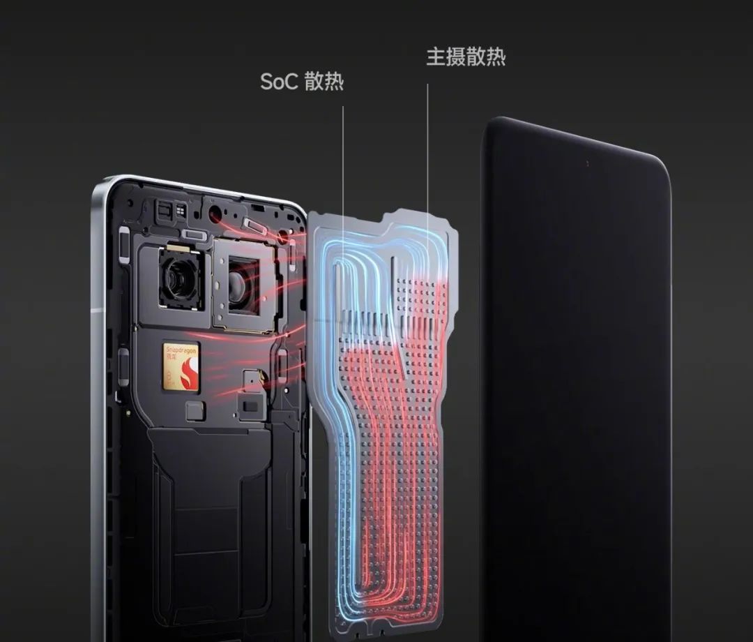 这次内置的双路环形冷泵散热系统不仅为芯片散热,还为主摄区域散热。