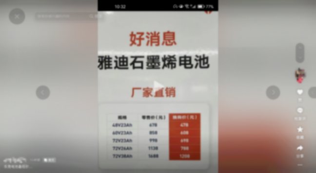 另外,年后有电池经销商在网络上发布了石墨烯电池最新换购价,48v23ah以旧换新478、60v23ah以旧换新608、72v23ah以旧换新698,大家在更换电池时可以参考。