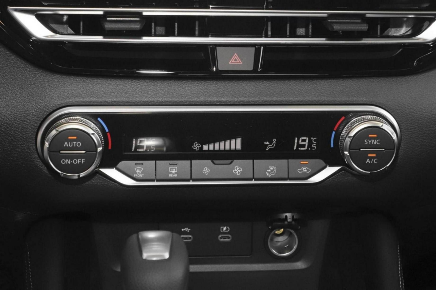 在中控屏幕下方,可以看到空调控制的实体按键,说实话在当下是比较少见了,实用性加分,但也许也会有人觉得过于复杂,这也就见仁见智了。