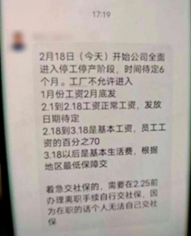 社交媒体上疑似高合汽车停工、工资缓发的信息。