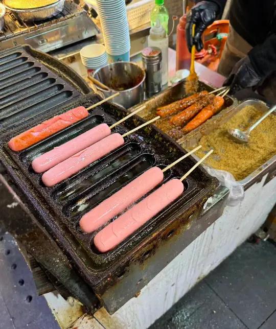 大鱿鱼、烤冷面、羊肉串、炒年糕、毛鸡蛋……几乎每个摊位都挤满了客人,然而在一众小吃中,淀粉肠摊位却显得异常冷清,这与昔日的火爆形成鲜明对比。