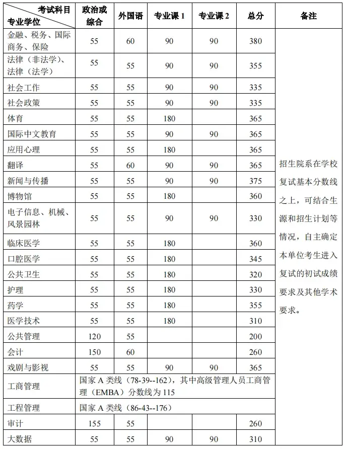 北大专业学位考研复试线
