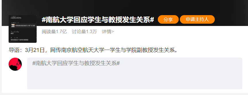 3月23日,南京航空航天大学一名学生和老师的事情登上了热搜,引发网友热议。